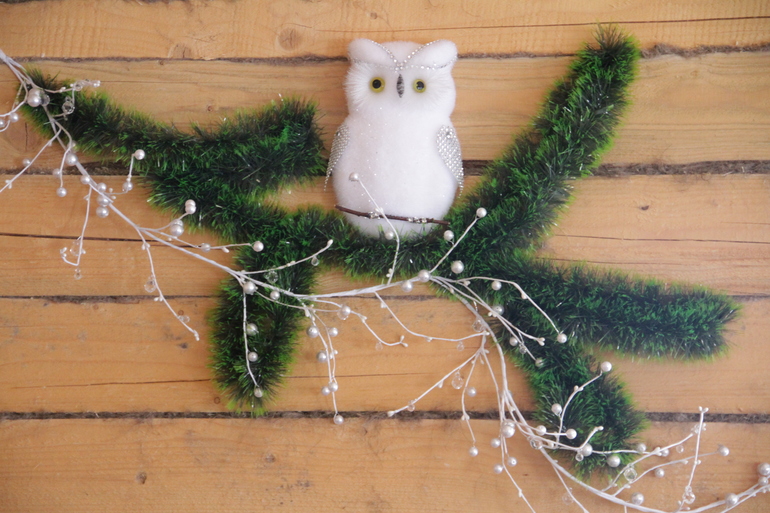 И то, чем я восхищалась все новогодние праздники - ветка для совы от моей мамочки) Мишура и декоративная штука из Красного Куба..я бы так не догадалась.