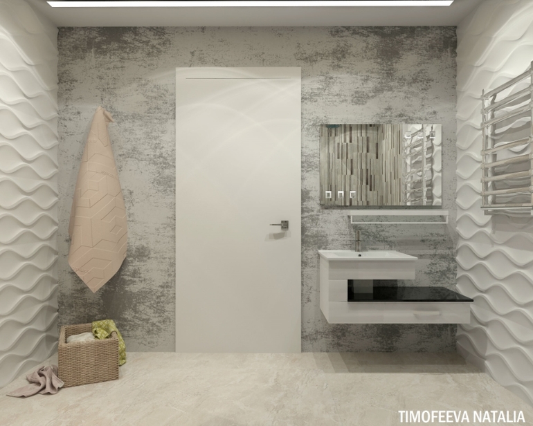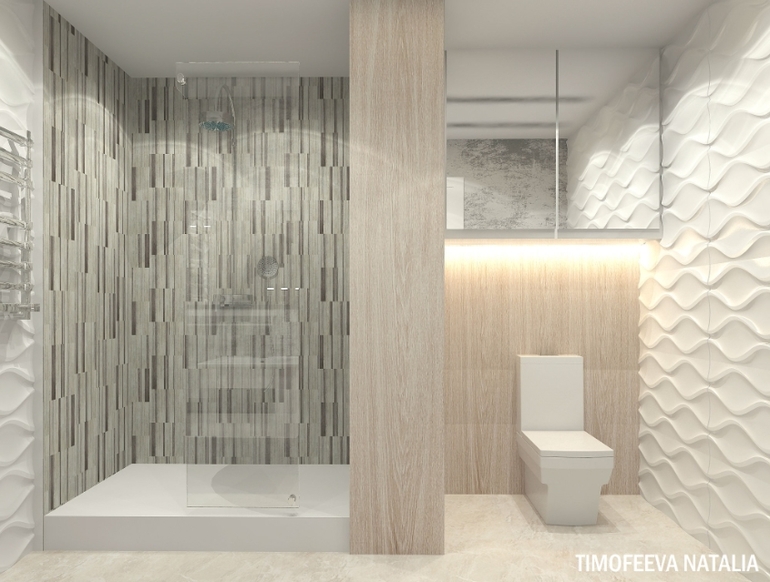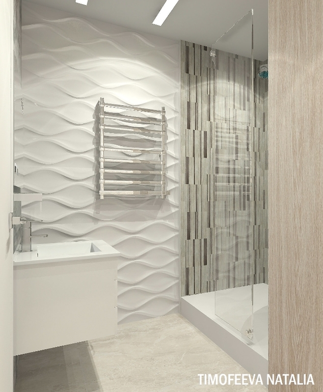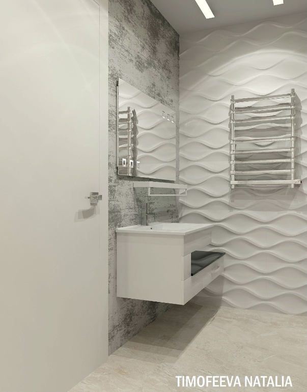 Очень красиво! Подскажите, пожалуйста, коллекцию объемной белой плитки в ванной.