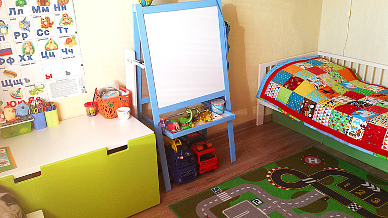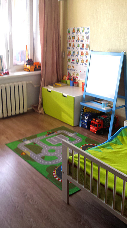 Для понимания цветового решения в детской - вот фото, пока шторы старые. будут фотошторы с машинками.