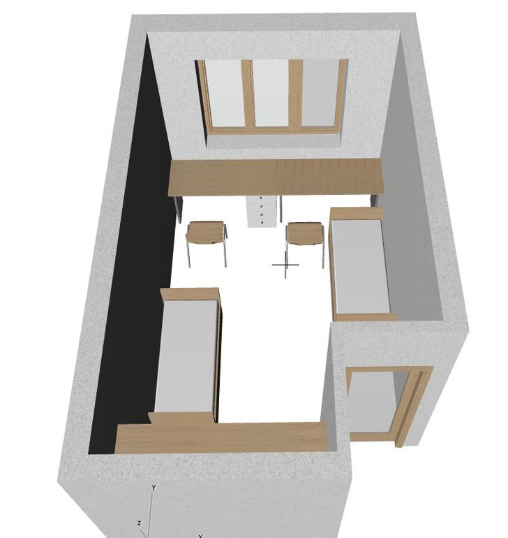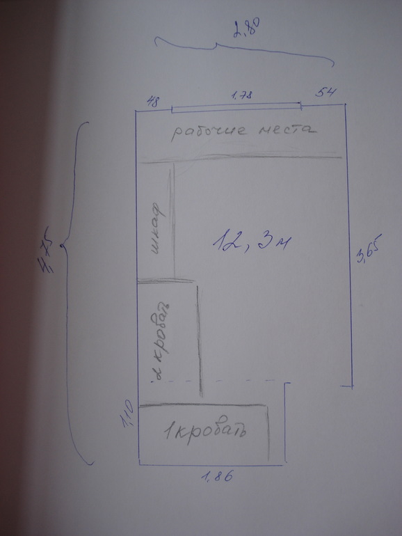 детскую пока решили (но может и передумаем, строим планы) сделать в маленькой комнате, убрав стену кладовки, получается 12, 3м. Тесновато конечно, но в другой комнате, балкон и она самая холодная. На данный момент детям 4 года (разнополые двойняшки). Думаю может лет до 10 пока здесь, а потом разделим их по комнатам. Из мебели возьмем с собой 2 кровати икея Гулливер (размер ее 165*76). Одна кровать как раз хорошо встает в проем от кладовки, все остальное пока не знаю как лучше расположить.Надо организовать им рабочие места где можно заниматься, школа не за горами. Думаю у окна что-то придумать. Маленький шкаф влезет сюда или нет, и нужен он здесь или нет, т.к поиграть совсем места не будет уже. Подскажите кто что думает, буду признательна за советы!