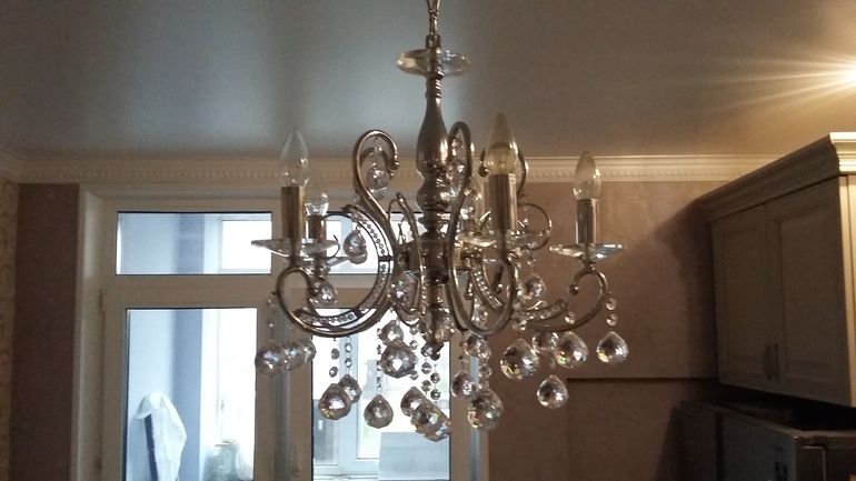 У меня такая)),завтра сфотографирую )) Она для высоких потолков, мы немного убавляли длину висюлек
