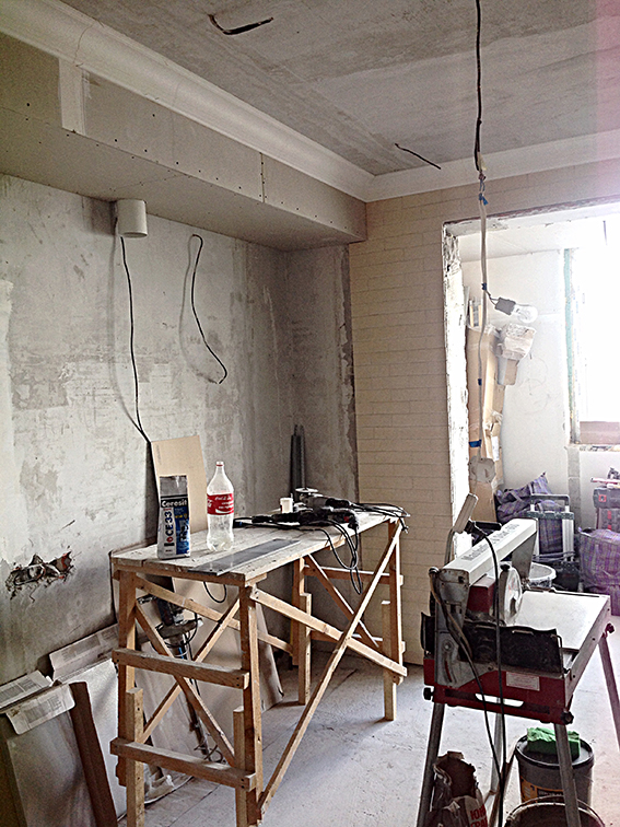 Дальше начался нелёгкий этап выбора материалов, кухни, сантехники. Т.к. сроки ремонта довольно сжатые, выбирали всё параллельно, часами ездили по шоу-румам, на нахимовском изучили, кажется, всё что можно было)
