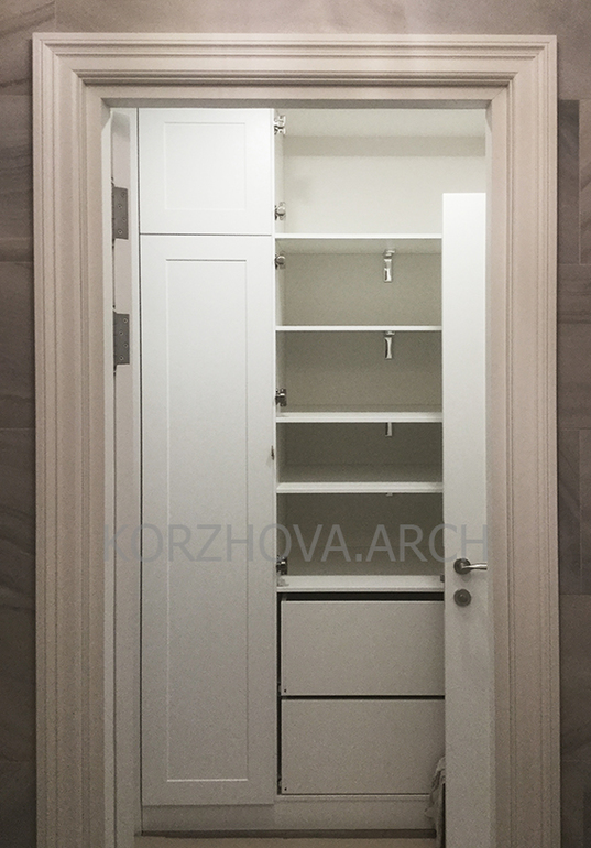 Хозяйственный шкафчик перед ванной (для бытовой химии, швабры и т.д.)