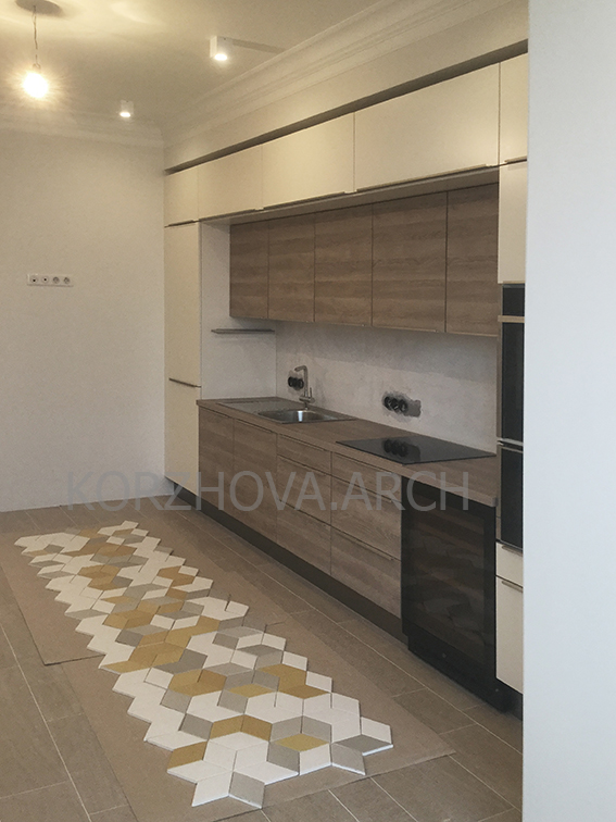 Знакомство с заказчиками произошло в начале апреля этого года. Было огромное желание заехать в квартиру в сентябре. По ряду независящих от нас обстоятельств, намеченная дата слегка сдвинулась. Так что, если бы не плитка в прихожую, которую задержали на 1,5 месяца, всё бы сложилось)