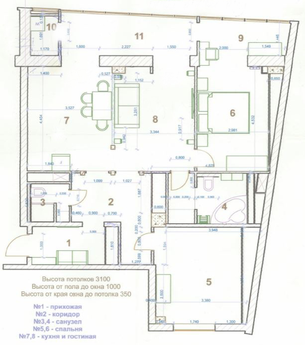 После обсуждений различных вариантов, итоговая планировка выглядела несколько иначе, чуть изменилось зонирование, ну в общем, смотрите сами)