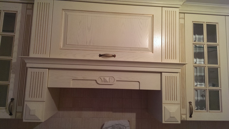 какие у вас двери? Я не знаю как будут сочетаться чисто белые двери без патины с такой кухней...