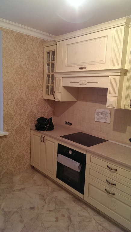 Вот наши обои и полы в кухне.