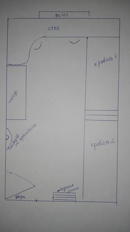 Если Менять шкаф и шведскую стенку местами, из шкафа получится только узкий пенал и немного загородит кровать.А стол принципиально только около окна хотим. Спасибо за отзыв