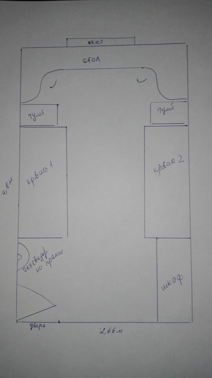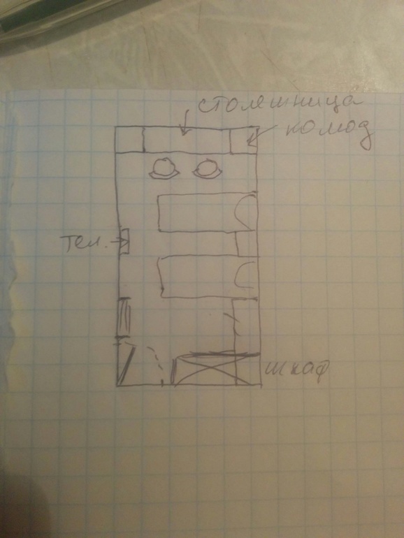 Шкаф сначала не туда нарисовала :) и небольшое место около него для игр остается.