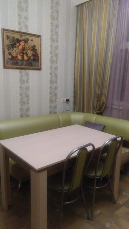 Наверное и самое главное, это комфортно ли вам на вашей кухне?! Мнений может быть масса, но если вам что то кажется лишним или не уместным, то можно и спросить народного мнения. Для меня много,очень много разного рисунка... Кухня, сами фасады,сделаны в трёх цветах, это уже смело. Потом обои в полоску казалось бы что такого? Но там еще и розочки, мне не нравятся обои, прошу прощения за мнение. Тюль розовый брали скорее всего к тонким розовым полоскам на шторах, что бы как то их подчеркнуть... И тюль и шторы сюда не подходят. И скатерть в зеленый горошек, отдельно можно обсуждать. Разве мало было зеленых фасадов? Диван и стулья, снова зененые. Потом пол слишком активный, замените розовый тюль, полосатые шторы на белые, все будет смотреться лучше. P. S. Увидела новый стол и он без скатерти, выглядит лучше чем было.