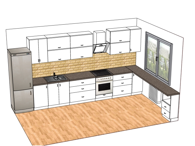 Вариант 2 (с исправлениями): Вытяжку сделать открытой, справа от вытяжки 3 дверки.