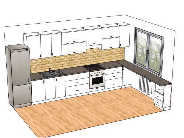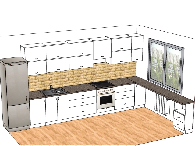 И верх, и низ можно варьировать, брать что-то из одного варианта, что-то из другого. Но у меня уже глаз замылился, да и смотрю с точки зрения красоты, скорее, потому что на практике была абсолютно другая кухня. Из моих практических желаний - это посудомойка на 45 см(больше, не помещается особо), и нормальная рабочая поверхность не меньше 80 см.