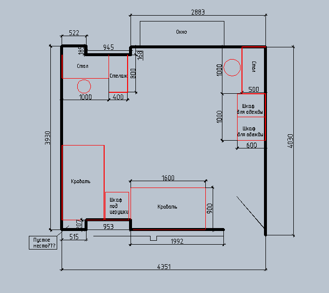 К моменту переезда ориентировочно (5,5 лет будет). Из мебели имеются раздвижные кровати Икеа, сейчас на 1,6 раздвинуты. Ума не приложу как функционально расставить мебель, ещё усложняют задачи выступы от монолита, на плане как могла размеры проставила ну и кровати в масштабе нарисовала. Что ещё детям необходимо? 2 стола, шкафа тоже 2 или 1 побольше. Под игрушки/книжки что-то. Что по опыту ещё? Без переноса дверного проема. Куда розетки предусмотреть и бра? Нужны они вообще, бра над кроватью? С перспективой скорой школы интересует расстановка, все-таки не за горами школа, а розетки нужны сразу предусмотреть(( мой единственный пока вариант
