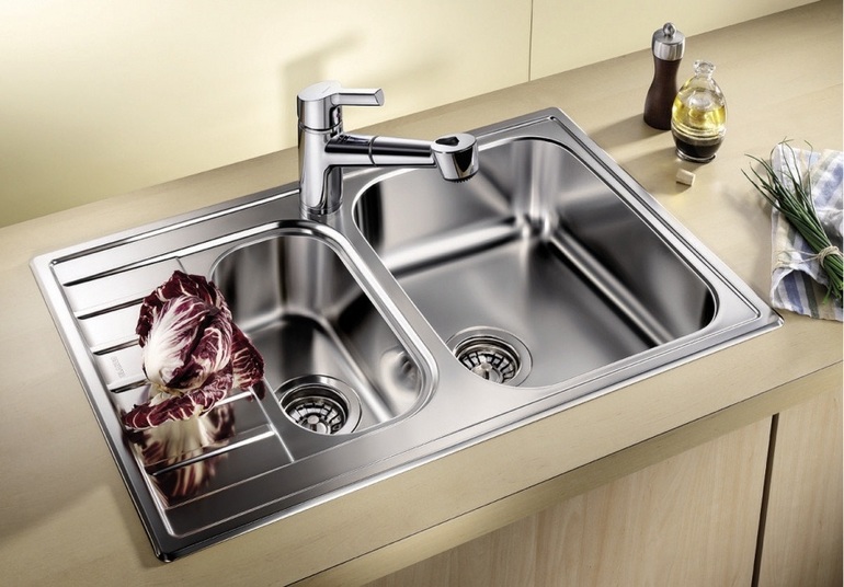 Берите двойную мойку это красиво и практично. У меня тоже мойка расположена рядом со шкафом, но как и обещали на фабрике Кухни-Завтра материалы из которых сделана наша мебель хорошего качества не боятся воды. Кухне второй год пока не жалуюсь и гарантия у нас на мебель 10 лет.