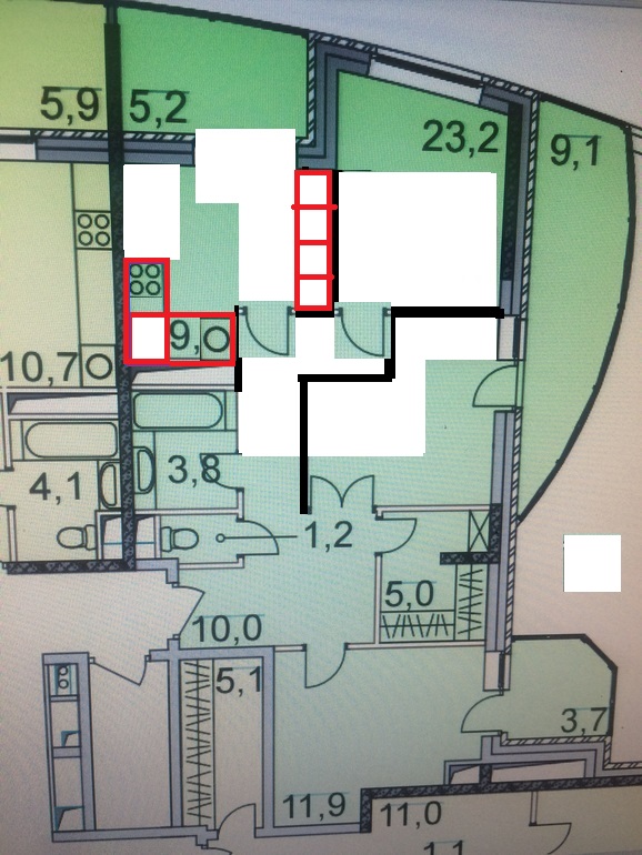 Спасибо, думали про такой вариант. Меня в нем не устраивает площадь кухни с балконом. У нас сейчас кухня с балконом один в один( кухня чуть больше, балкон чуть меньше) не смогли подобрать удобный нам вариант расстановки мебели