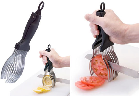 Опять же, яйцерезка у нас есть, но ни разу не пользовались. Вот штуку, которая позволяет ровно резать помидоры и прочее, я бы хотела, при моей криворукости, но тоже - я вот твердо уверена, что не стану с ней возиться, быстрее и проще ножом, потом нож и помыть быстрее...
