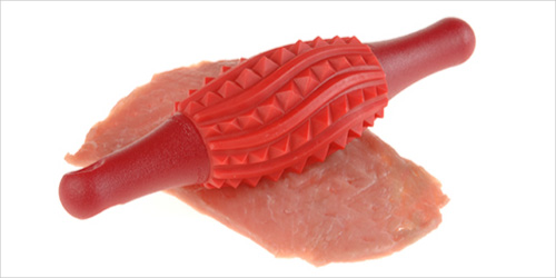 Красная штука, типа скалки, для мяса- фигня полная, у меня такая. Намного лучше обычный кухонный молоточек.
