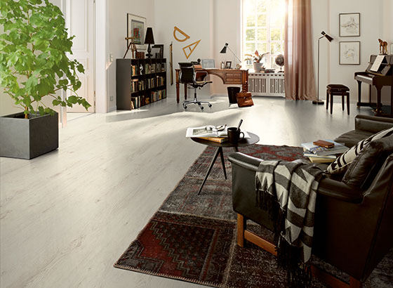 Ламинат планируем в холодных тонах, вот такого типа (на фото Таркетт - Дуб Мюнхен), либо чуть серее....