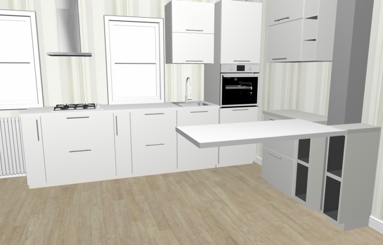 Интерьерное решение кухниВот с проектом все-таки определились! Спасибо всем, кто участвовал в обсуждении, ваши советы очень помогли!!! На днях уже будем замерщика вызывать и начинать делать) Стойка-столешница будет нормальная, цельная, с опорой, конечно, не пугайтесь (это я в икеевском планировщике пыталась что-то подобное набросать)))))))