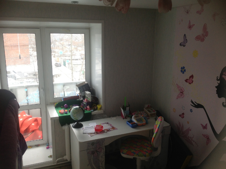 Декор окон. Текстиль. Жалюзи.Сделали ремонт в детской комнате, но никак не могу придумать что и как делать с окном. Окно с балконной дверью. Ширина окна слева 40см, а справа 1,5 метра. Натяжной потолок, но оставлено место между окном и потолком для гардины. Широкий подоконник, на котором девочки любят ставить дом для игрушек и играть. Комната солнечная, нужны плотные шторы, чтобы закрывать их на сон. Не могу придумать какого вида лучше сделать шторы, закрывать ли стену справа или повесить полочки для школьницы. Какой цветовой гаммы и с рисунком или без. Мебель в детской с принтом бабочки, И