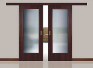 Раздвижные двери я бы не советовала. Мы такие у родителей поставили, три года уже мучаемся. Они проседают под собственной тяжестью, гнут верхние напраляющие и ездят уже только, если всем телом толкнуть. Переделывали их дважды, но только на время помогало. Плюс у них плохая звукоизоляция. А вам, если заложить проем до размеров имеющейся двери, то это пространство без обоев можно оформить молдингом, как в рамку и внутри покрасить.