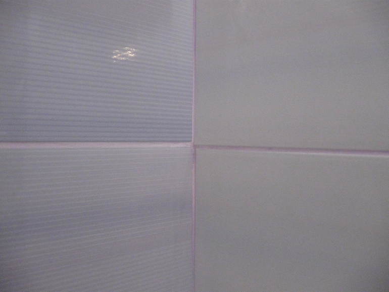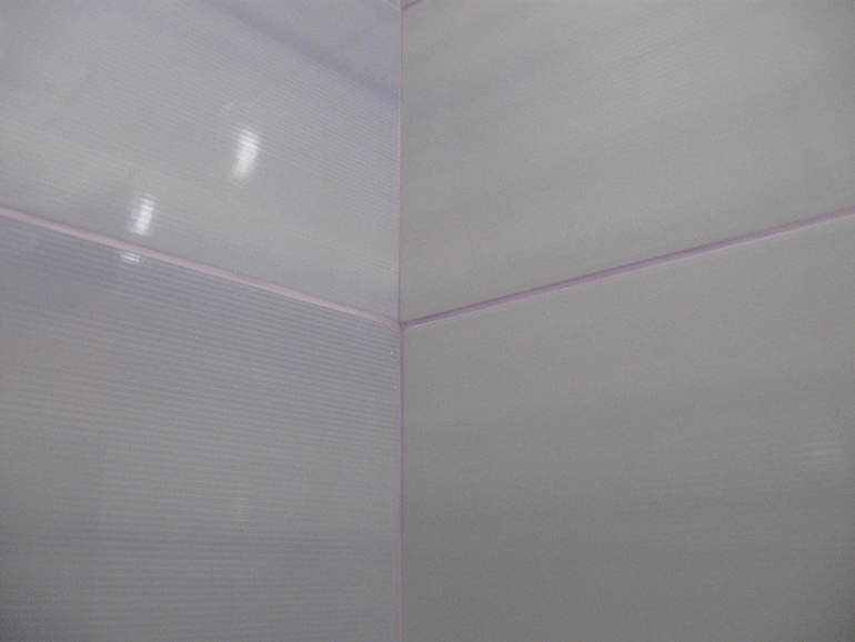 На этих фото видно, что затирка разного оттенка, от светло розового до ярко-фиолетового, по словам мастера, когда высохнет станет вся одного тона, прошло уже трое суток, пока не вижу, что цвет становится однородным по всей стене, пока как зебра.