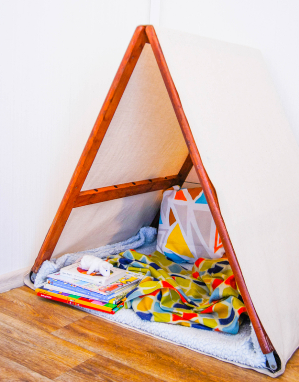 Внутрь я положила плед и подушки, иногда Тима берет с собой игрушки. Еще я хочу добавить туда подушку в форме облака, флажки снаружи и уютный детский ночник.