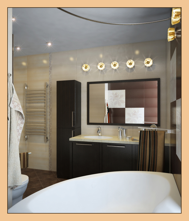 Новая ванная комната. Как вы видите, плитку нам удалось сохранить. Благо, данную коллекцию до сих пор и выпускают и продают.