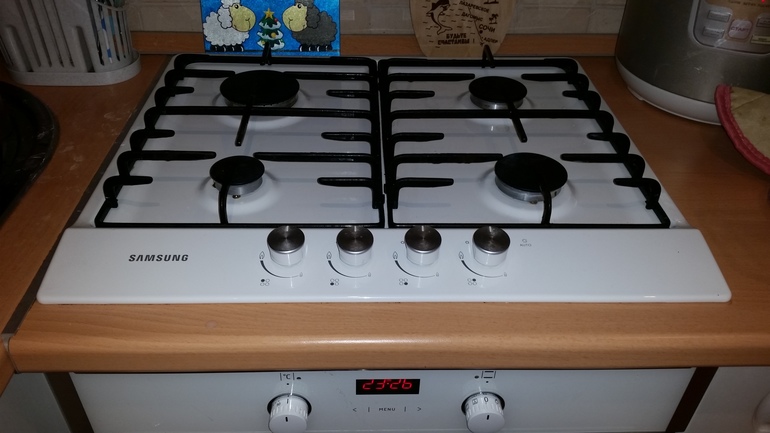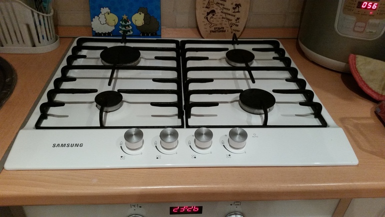 Нет, не помню к сожалению. Попробуйте позвонить в магазин, Электролюкс единственный в белом цвете представлен. Они подскажут модель. Считается, что это белая варочная панель, но оттенок кремовый, особенно четко это видно на фоне серой столешницы в магазине