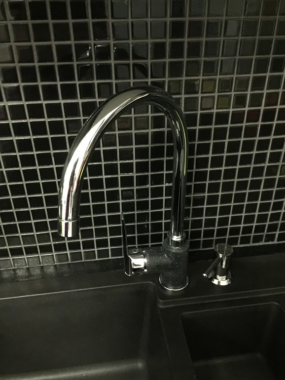 У меня, как видно на фото, форма мойки другая. Но с дозатором очень удобно. Нам еще очень повезло с консультантам, предложил нам относительно недорогой смеситель с двумя носиками. Из одного обычная вода течет, а из другого фильтрованная, так что не пришлось занимать отверстие под кран от фильтра