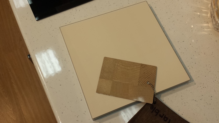 В реальности цвет фасадов молочный, желтизну видать только если белый приложить, на фотке больше бежевый почему-то. Техника стальная. Полы будут в цвет столешницы. Плитку хочу молочный кабанчик. Стол темно коричневый. Стены буду красить, одну возможно заклею обоями с рисунком (хочу выделить зону отдыха). Помогите определиться с цветами. У меня в голове или светло-бежевый или светло-серый... А какой тогда диван? И еще такой момент яркие, насыщенные цвета не пойдут - кухня темновата. Спасибо всем кто откликнется.