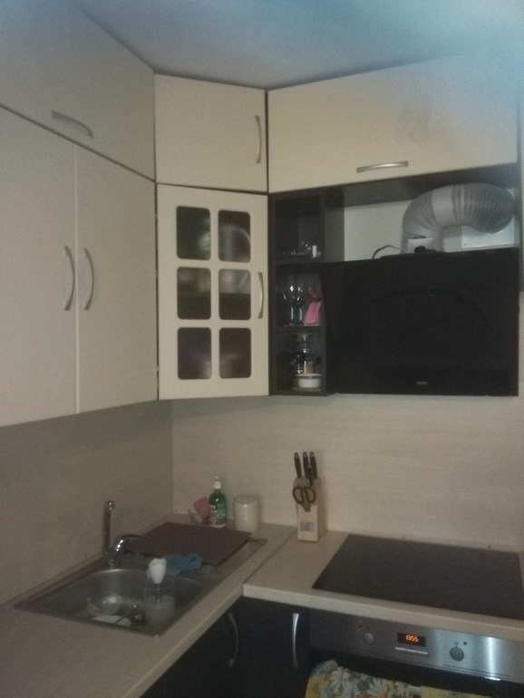 Интерьерное решение кухниДелаем ремонт в нашей квартире. Уже три дня занимаемся планировкой нашей малюсенькой кухни. Ничего не умещается, ночью пришла идея поместить варочную панель в угол кухни. Есть ли здесь те, у кого также. Может покажите кухни с таким расположением. Моя кухня 5,8, никаких газовых колонок нет, просто газовая труба.