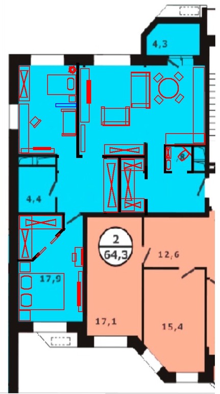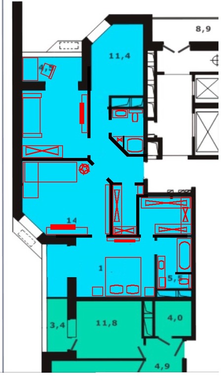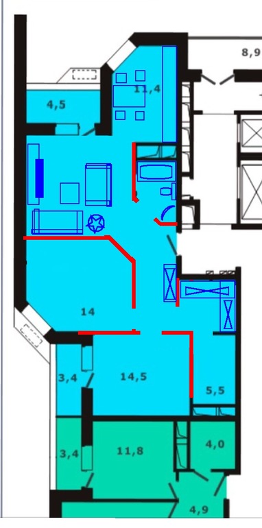 Очень хорошо получилось! Жаль, что потеряна 1 изолированная комната, но если будет только один ребенок - это идеальный вариант.