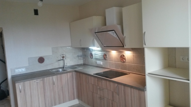 Хорошая кухонька, ярких пятен добавит текстиль и посуда, часы, доска-меню... Светло и мило у Вас!