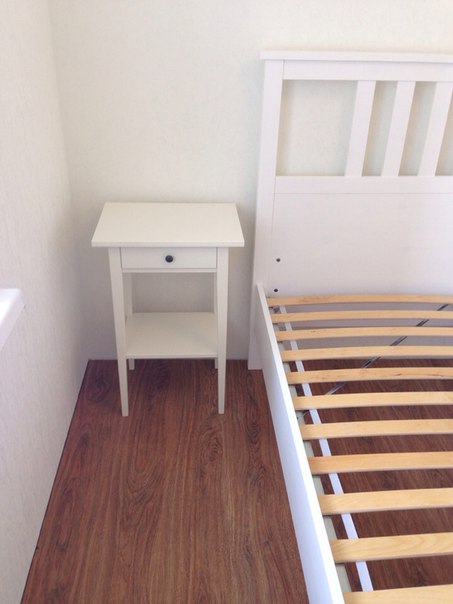 у нас такие тумбочки - белая морилка, кровать черная, очень хотела и комод хемнес, но по своим габаритам он не входил в отведенное ему место, пришлось купить бримнес, в прочем пока не пожалела об этом! показываю