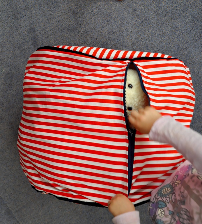 Не судите строго, я второй раз в жизни сидела за швейной машинкой ;) Хоть мое исполнение и далеко от идеального, результатом я довольна - в этот пуфик влезли все наши игрушки и мы освободили целую полку в шкафу с игрушками.