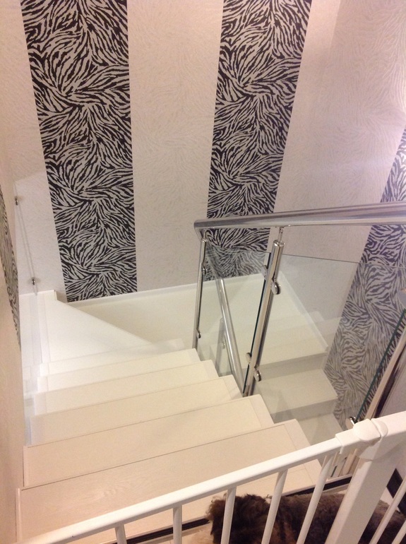 На светлой лестнице наоборот меньше видно грязи, пыли.