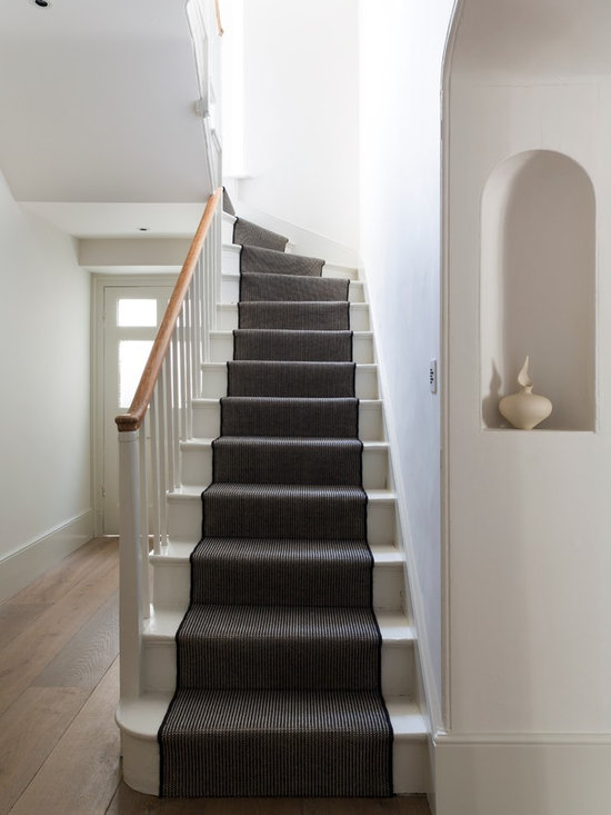 У нас подступенники белые и ступеньки беленное дерево, это фото вечером, при дневном освещении все еще светлее, лестница-пылесборник, это правда, пыльна светлом не видно, но меня жутко бесит, что мои черные длинные волосы почему-то все оказываются на лестнице:)) по мнению нашего дизайнера светлая лестница смотрится легче, но это, конечно, применимо именно для конкретного помещения.