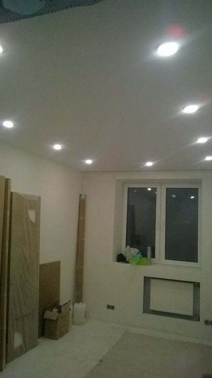 Точечные светильники нигде не делали, как-то не наша это история. И вообще мне кажется эта мода уже устарела