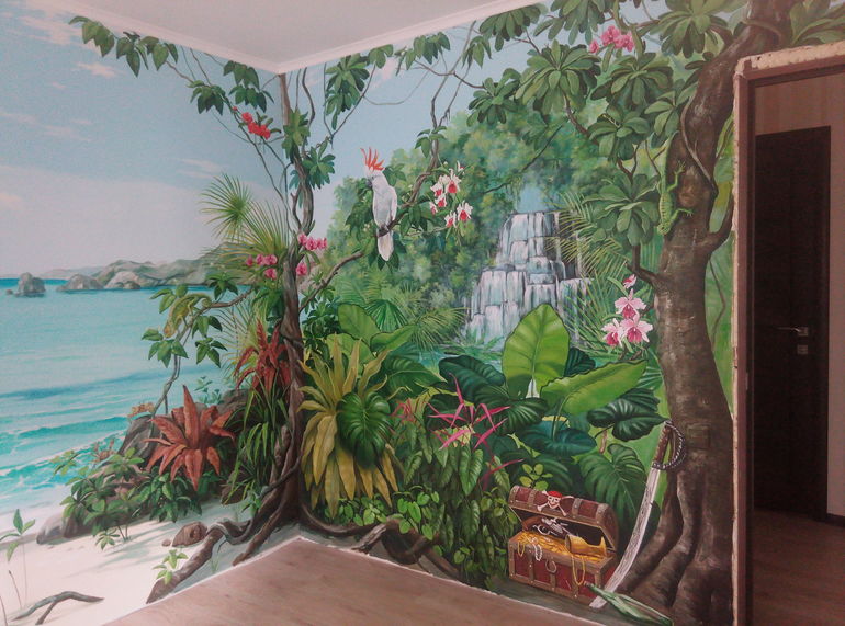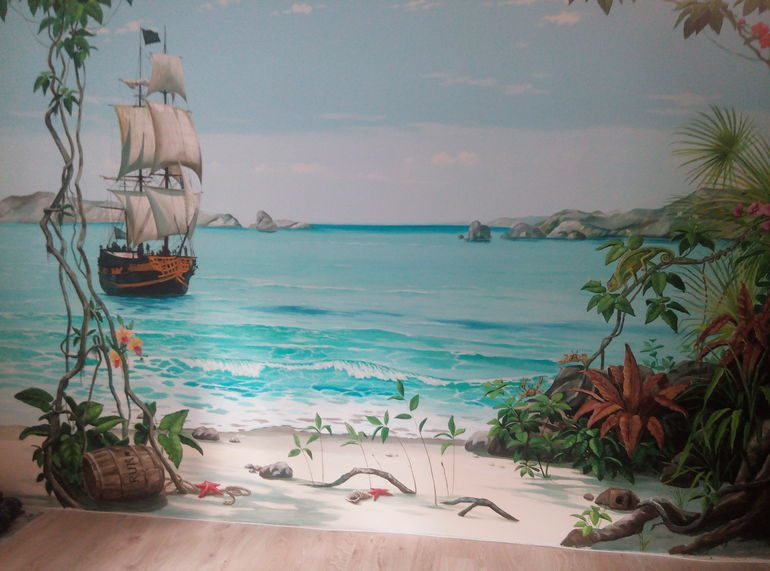 Может еще что посоветуете ? Стена , которая напротив моря, просто песочная, на ней думаю карту повесить пиратскую , состаренную.