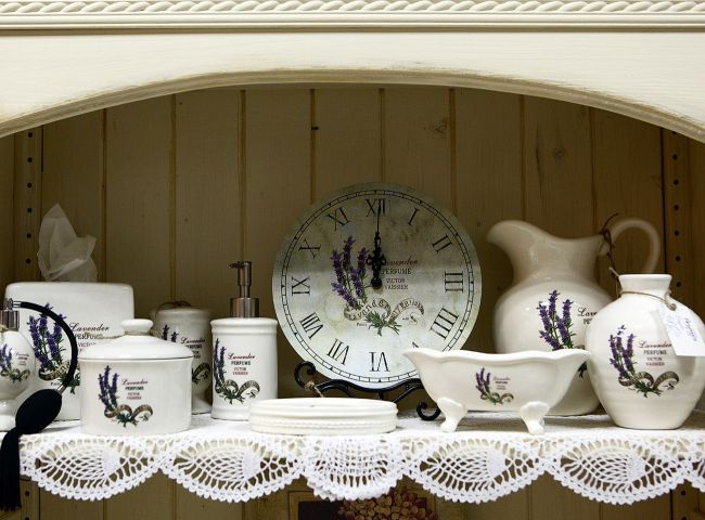 Я на этом сайте находила или такое или нечто подобное с лавандой http://megaterem.ru . Посмотрите по каталогах. Смотрится конечно шикарно, но мне кажется, что предметов очень много, особенно для моей кухни малютки) А на большую отлично подойдет =) У Вас хороший вкус.