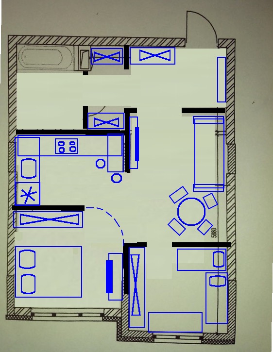 я видела на другом интерьерном форуме шикарное решение для такой квартиры.. не знаю насколько можно тут вставлять ссылки на другие форумы.. поэтому вставлю картинку, как в итоге сделали.. спальни с окнами, кухня-гостиная)) если хотите - в личку скину ссылку на тему..