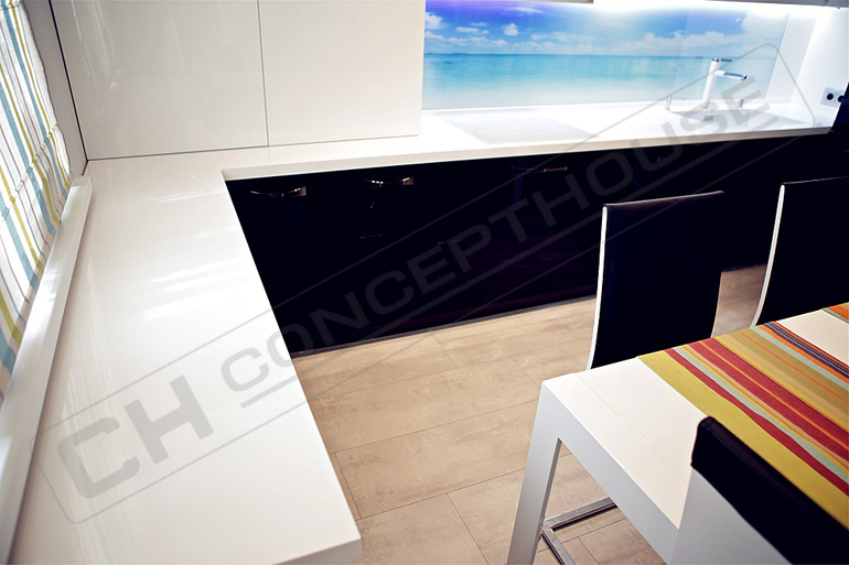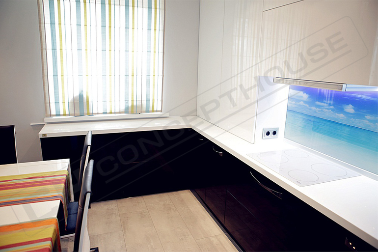 У меня был проект с черно-белой кухней, только я сделала наоборот- белый низ, чёрный верх. С хозяйкой общаюсь , очень довольна, никаких пятен нет.