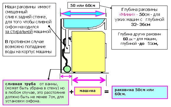 Сейчас сфоткать не могу! Но у нас стиралка одна из самых узких и раковина специальная. Их выбор очень не большой!
