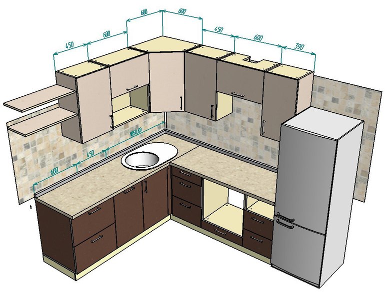 у нас вот так, мне очень удобно. Но это наверно из за того , что навесные шкафы на 1 стороне.