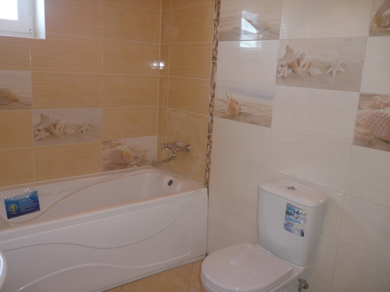 Фото во время ремонта. Потолок белый. Я бы над ванной вообще не делала декор, муж и строители решили в моё отсутствие, сначоло бросалось в глаза, сейчас привыкла. Мне нравиться.