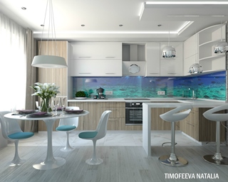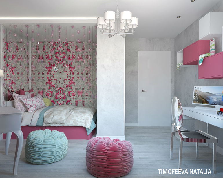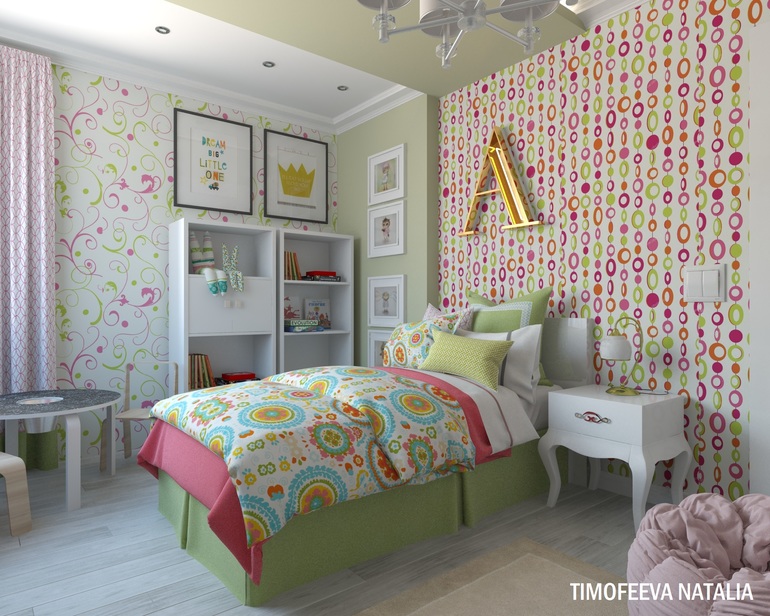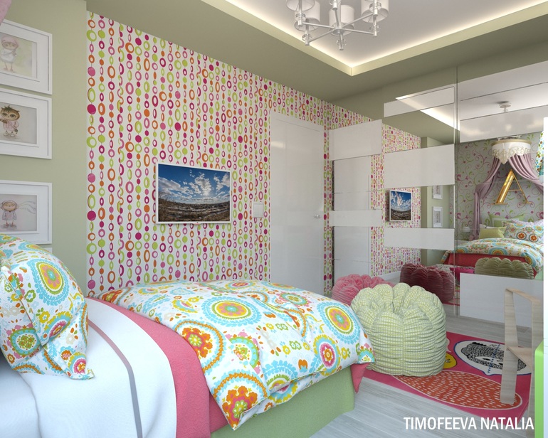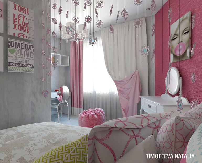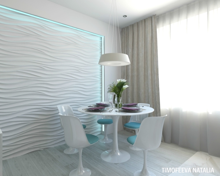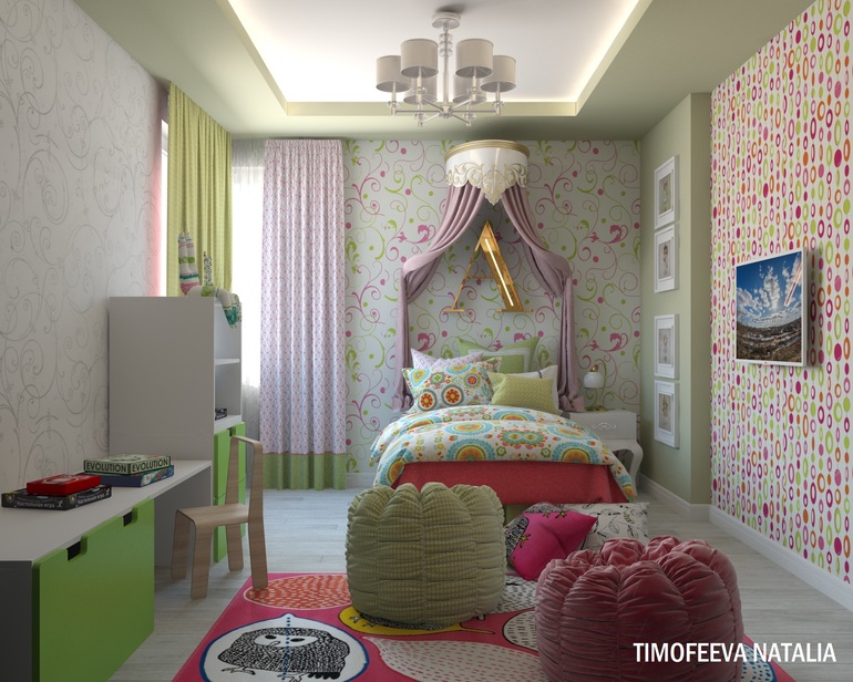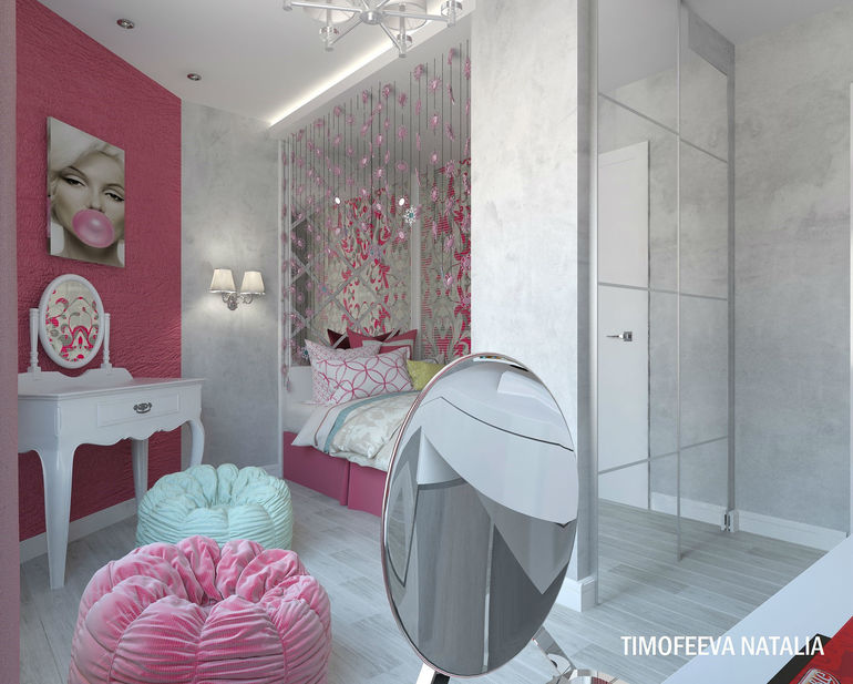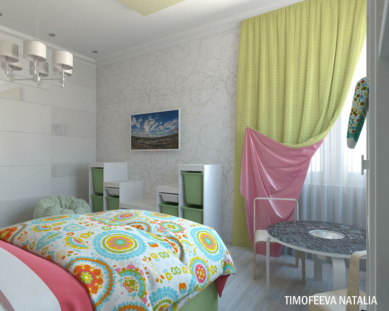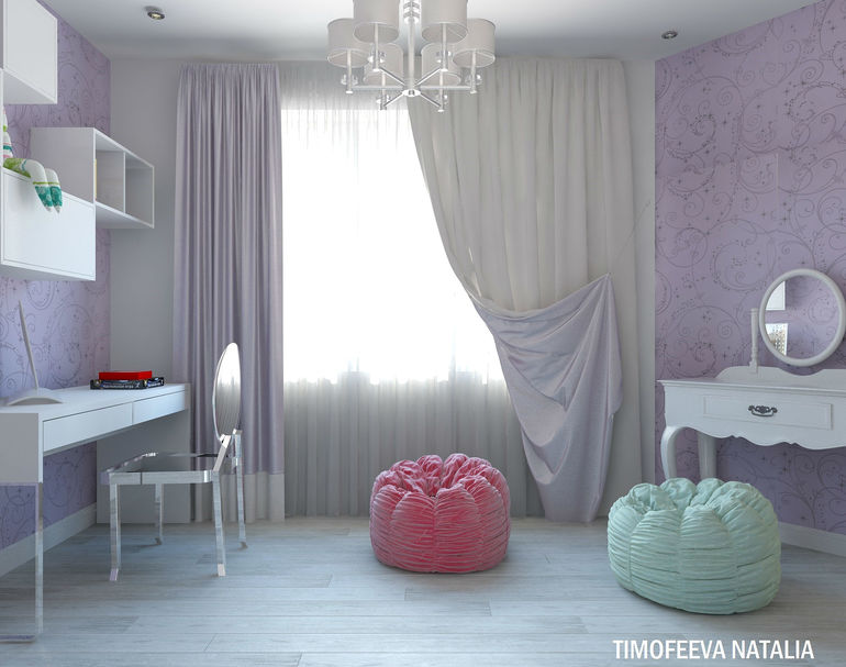 Квартира площадью 90 кв.м. Интерьер для папы, мамы и двух сестренок. Для того чтобы у каждого члена семьи была своя комната, мы разделили гостиную на две части, в результате чего получили еще одну детскую комнату, вторую часть комнаты объединили с коридором и организовали гостиную зону. Сан узел разделили на два, один для спальной комнаты, второй общий. Дизайн был разработан в 2 вариантах, в оттенках бирюзы и сиреневом цвете...