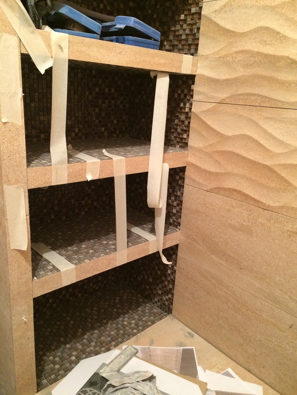 У меня мозаика. Фото ещё со времён ремонта. Сейчас там хуже, начиная от туалетной бумаги, заканчивая игрушками))))))