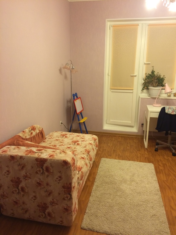 в планах конечно купить две одинаковые кровати, шкаф для одежды, и повесить шторы, но сейчас комната выглядит вот так :