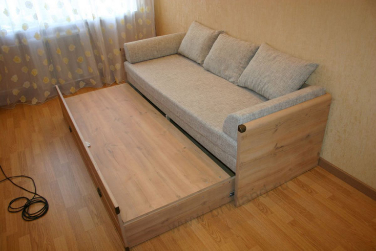 Классная кровать. Но, постоянное выдвигание может оставлять следы на ламинате. У нас подобная кровать, только с ящиком для белья, за четыре года использования прочертила борозду на полу. Или обратите внимание на колесики, у нас пластик, может быть силикон не будет царапать пол.